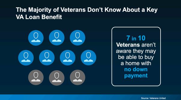 If you’ve served in the military (or if your spouse has), you have access toone of the most powerful homebuying tools out there. The chance to buy ahome without having a down payment.Unfortunately, 70% of Veterans (that's 7 out of every 10) don’t know aboutthis benefit, according to Veterans United.